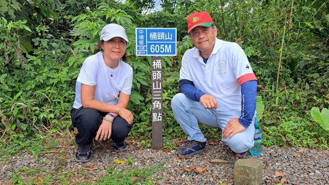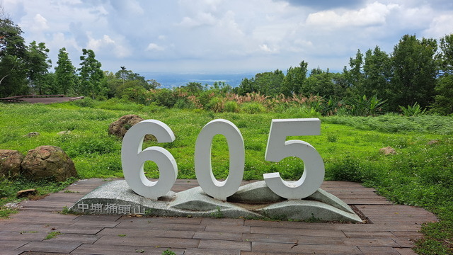 走上桶頭山,有一片視野良好的大平地,向前望可遠眺仁義潭和嘉義市。山頂有個三角點,怕人不知道有多高,豎立了大大的605字牌供人拍照,那就稱為605高地吧。