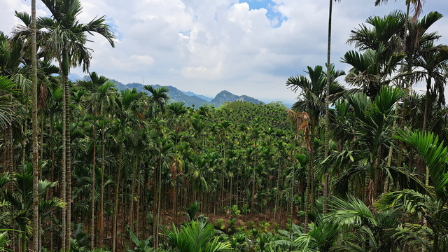 從605高地向下行,有一些惡山風景,經過滿山滿谷的檳榔樹林,最後又繞回了「圓環口」。到「圓環口」之後,隨便向右選一條路,從產業道路出來,沿路欣賞仁義潭遠景,經過白石馬露營區,回到原地。