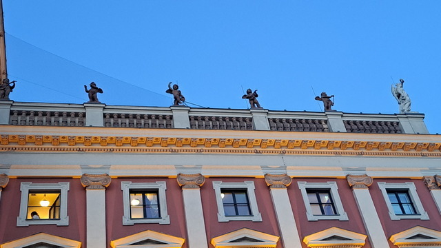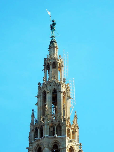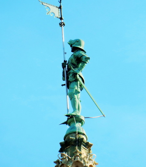 傍晚坐在市政廳走廊,享受半刻清閒。但是總也找不到傳說中的屋頂騎士。直到離開市政廳時,才從側面遠遠望見,用長鏡頭才找到屋頂騎士。