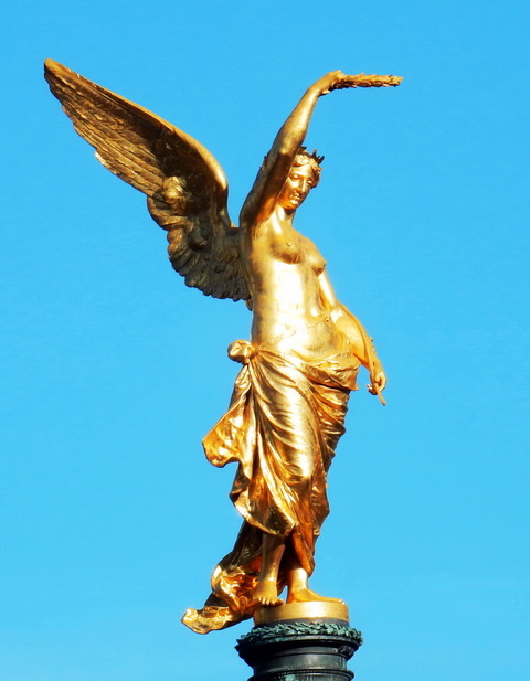 19世紀時,奧匈帝國皇帝法蘭茲推動維也納現代化,拆除了舊城牆,開闢了「環城大道」,下令新建築物不得高於位於環城大道上的「感恩教堂」(Votivkirche),這座哥德式教堂的尖塔高達99公尺。1882年建造市政廳,高度97.9公尺,在建築驗收通過後,設計者妙地在塔頂加上了一尊3.4 公尺的騎士銅像,超過了99公尺。這些銅材來自俄國沙皇贈予奧地利皇帝的硬幣。由於這些硬幣在奧地利無法流通,便被融鑄成雕像材料。銅像內部是鐵,外部披銅。