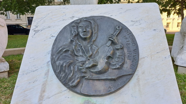我們繞著教堂簡單巡了一圈,旁邊還設有韋瓦第的裝置藝術,頗具現代感,與古典建築形成有趣對比。