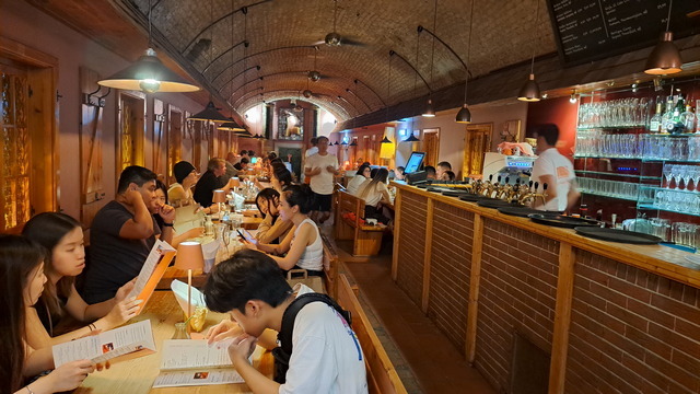 終於來到這趟旅程中,最像樣的一家餐廳,但是走進去一看,不禁噗哧一笑。裡面幾乎都是亞洲人,想必是部落客抄來抄去。其實這裡是密閉的室內空間,歐洲人不喜歡來這種地方用餐,因為他們都喜歡坐戶外。而且服務生、櫃台人員都是一群年輕乾淨小伙子,缺乏了復古的張力。