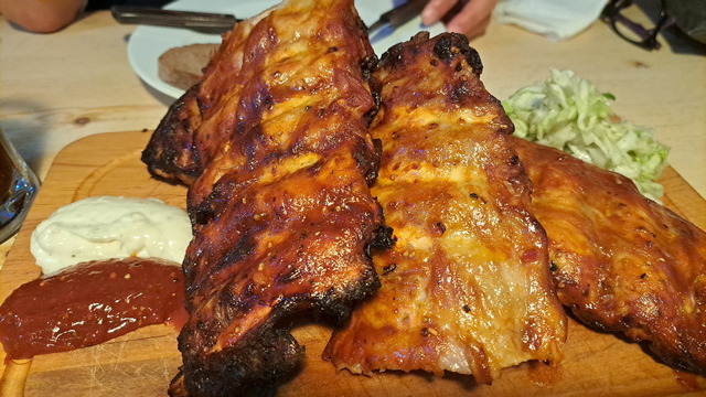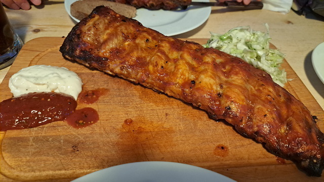 看到很多亞洲獨行俠一個人就點一大盤豬肋排,他們也真拚;至於味道,說不上不好,只是總覺得,沒有前幾天在捷克路邊攤大口大口吃肉那麼過癮。