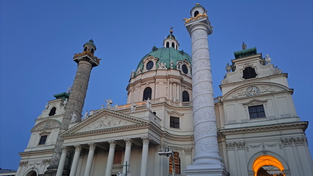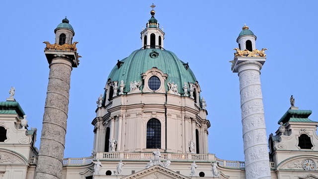 西元1713年,維也納爆發嚴重的黑死病,奪走上萬條人命。當時的神聖羅馬皇帝查理六世祈求天主保佑,發願若災疫解除,將建造一座教堂獻給瘟疫守護聖人波羅梅奧,所以古代歐洲跟台灣一樣要還願。