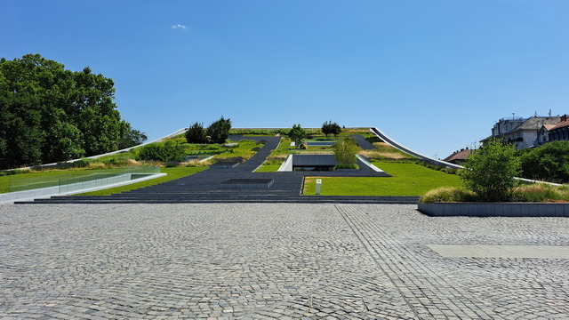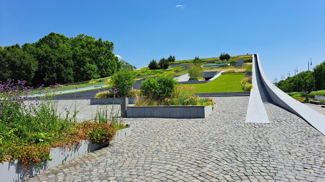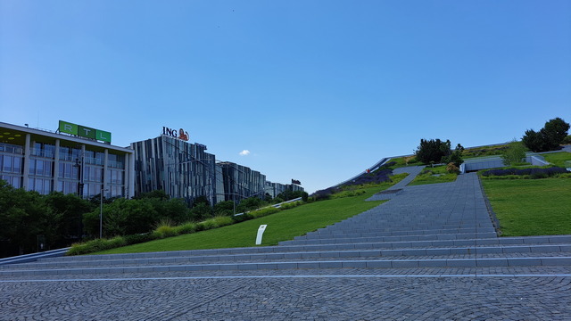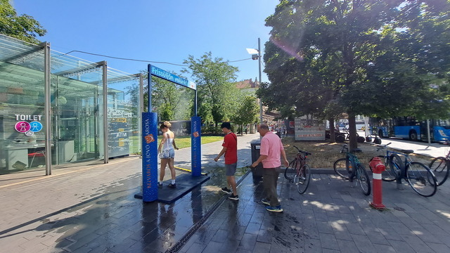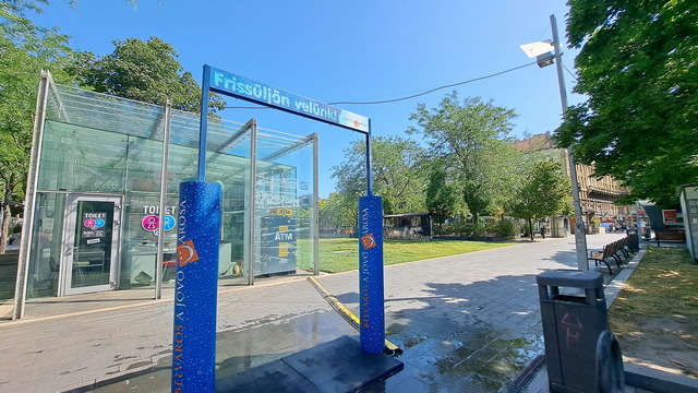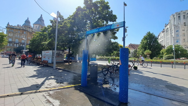 沿途經過「噴霧門」,炎炎夏日裡,匈牙利各地都會設置這種裝置,讓行人走過時能瞬間清涼一下。前兩天在巴拉頓湖也有看到。