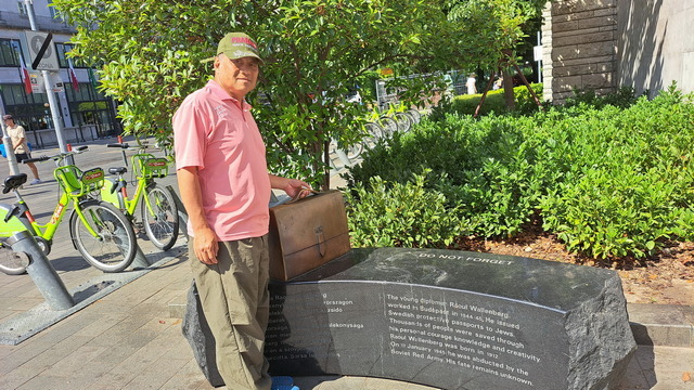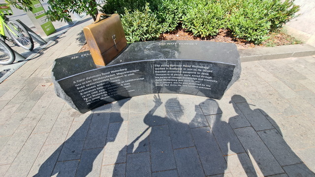路上還有許多雕塑,其中一件是形狀像公事包的雕像,用來紀念瑞典外交官華倫堡(Raoul Wallenberg)。1944年下半年,他被派駐布達佩斯,發護照給猶太人,拯救了幾千名猶太人。可惜後來被蘇聯紅軍逮捕,從此下落不明。