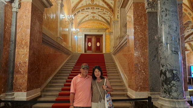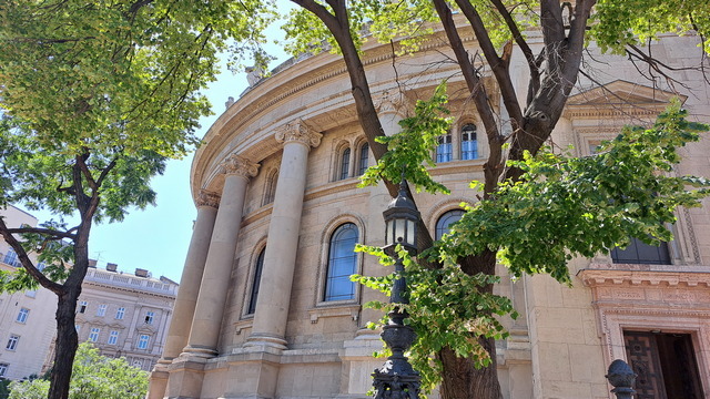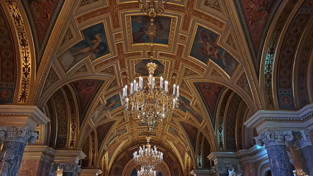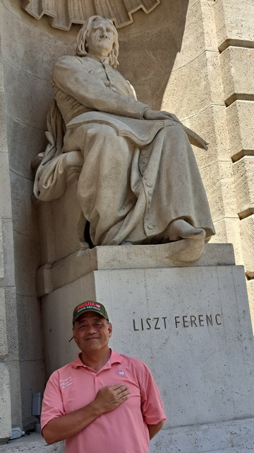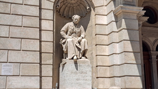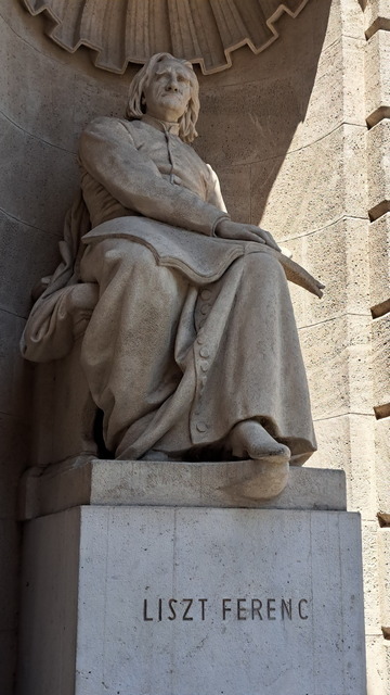 大門兩側的雕像分別是李斯特(Franz Liszt)與埃爾凱·費倫茲(Ferenc Erkel)。去年已經在德國威瑪拜訪過李斯特了,他沒在匈牙利發展,但是終身以匈牙利為榮,而匈牙利人也以他為驕傲;而費倫茲是匈牙利國歌作曲者。