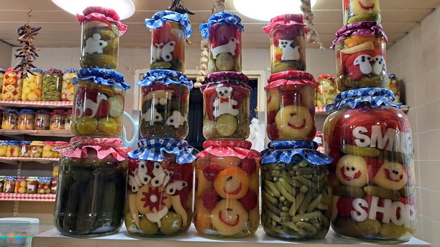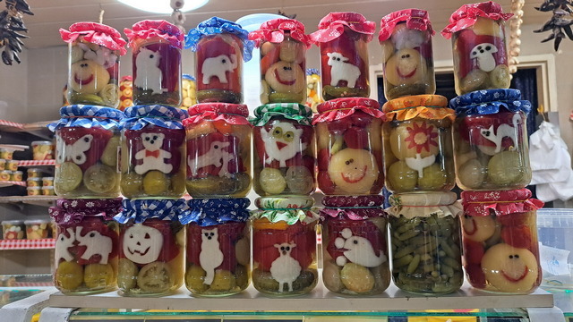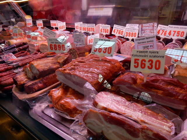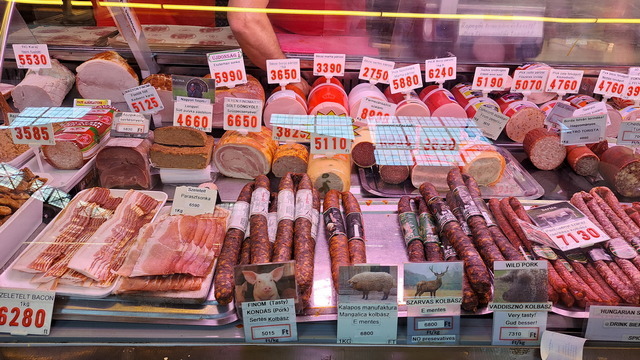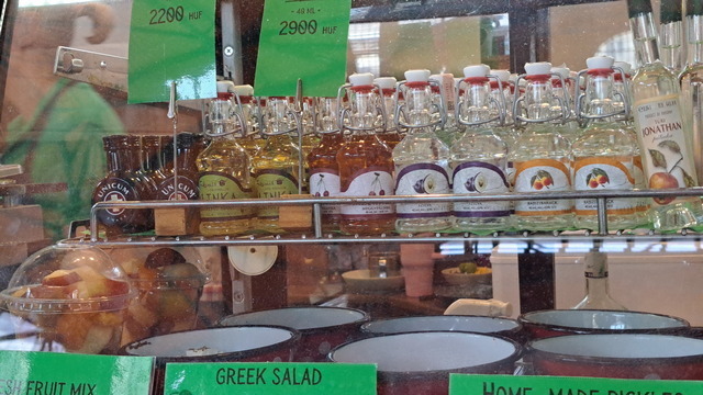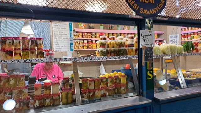 市場環境乾淨整齊,價格標示清楚,小販都會為自己的攤位和品項的美感負責,連醃黃瓜的罐子都有笑臉。當然,看到香腸和酒就買來吃,在美食如雲的匈牙利,香腸真不算是強項。