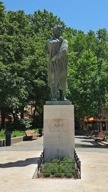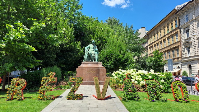 走著走著,來到八角廣場,又遇到兩座雕像,兩個人銅像分立街道的兩側,那就來認識一下小說家尤卡伊·莫爾(Jókai Mór)和詩人阿迪·恩德勒(Ady Endre)這兩位匈牙文學家,分別代表了匈牙利文學的浪漫主義與現代主義時期。