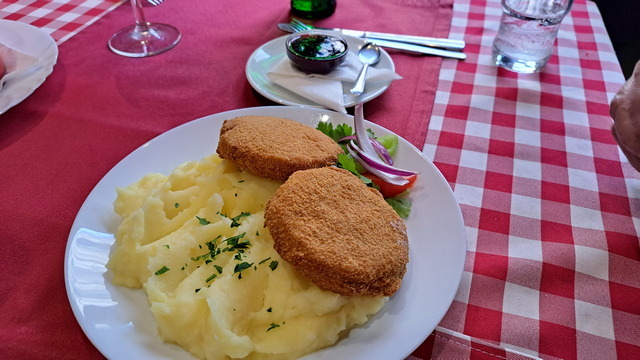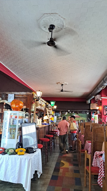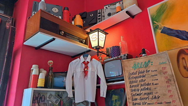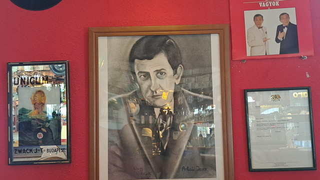 嬤嬤家住在英雄廣場附近,中午約我們在Piroska Slager Pub餐廳一起吃飯,K 媽的上班時間很彈性,也特地趕來陪我們吃飯聊天。這家餐廳走復古懷舊風格,店內擺設了一些跟流行音樂相關的裝飾。餐廳樓上曾住過匈牙利知名的電視主持人 Antal Imre。他原本是鋼琴家,後來轉型成喜劇演員與節目主持人,在匈牙利聲望極高。