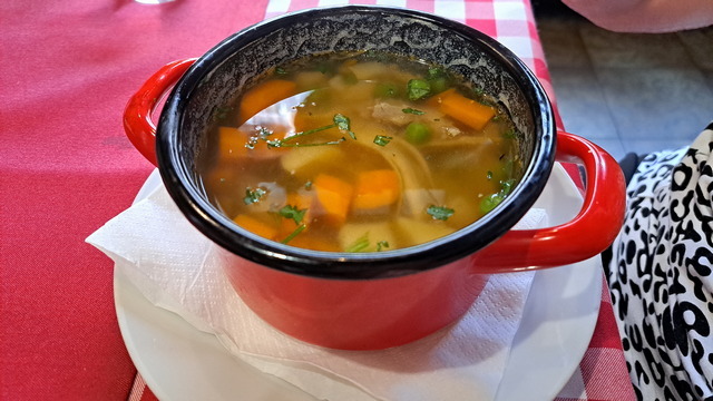 嬤嬤回憶起莉莉小時候,常常推著嬰兒車來這一帶散步,Antal Imre看到莉莉很可愛,也經常抱她。天底下的阿嬤都是一樣的,和藹慈祥,總是想要多跟家人聚在一起吃飯,家人聚在一起是美好幸福的事。嬤嬤今天心情特別好,話特別多。我們都只點了一道菜或一道湯,不過這樣就可以飽餐一頓,大概是材料特別豐富吧,不像台灣習慣點一堆小菜或是幾菜一湯。
