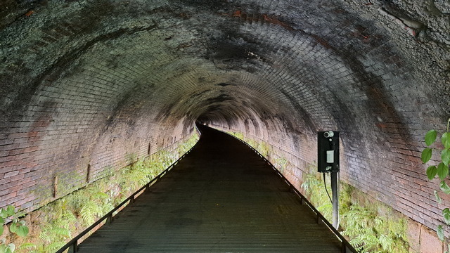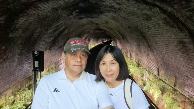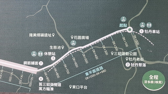 終於走完了這條1.8公里的隧道,從東口走出來時,心中竟有些不捨。我們在上午10點20分從西口進入,,10點55分走出東口,單程只需半小時,回程走得更快。這裡曾是龍美煤礦的所在地,再往前走一公里,就抵達牡丹車站。