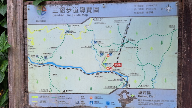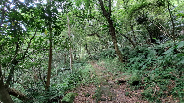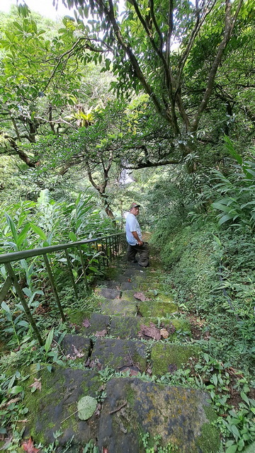 從隧道口右轉走幾十公尺,對面山壁便是三貂步道的登山口。步道入口處還設有信箱,不知上面的人家是否會走下來收信。一開始就是一串又長又陡的階梯,直到抵達土地公廟後,路才變得平坦許多。