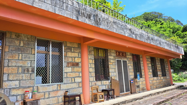 再走不遠,我們來到夢幻寺。這裡的狗就沒有被拴住,只能戒慎恐懼地通過。這座寺廟由大石磚堆砌而成,風格典雅,在台灣的宮廟中相當少見,透露出禪師對美感的追求。