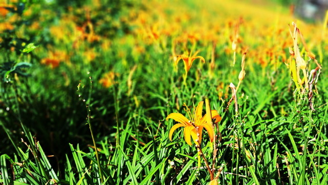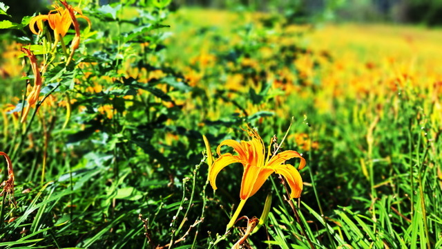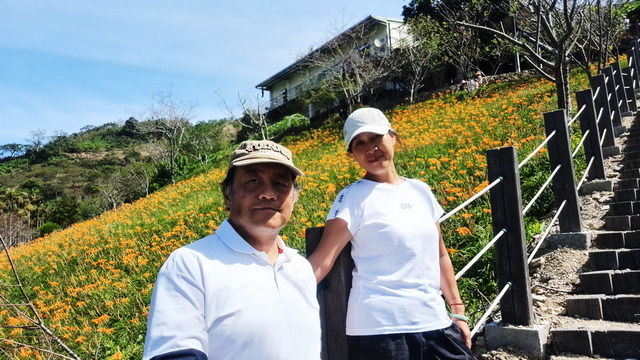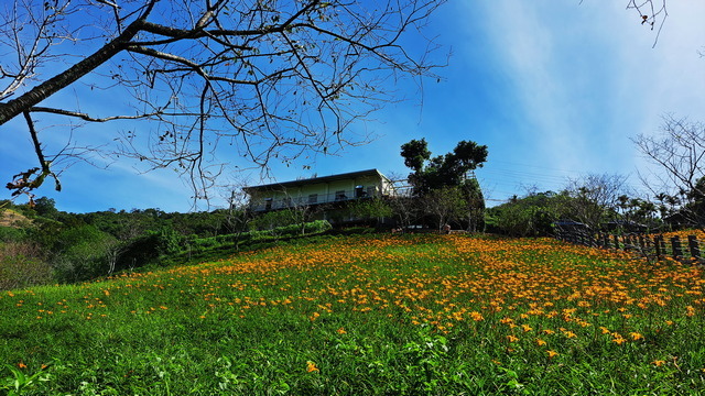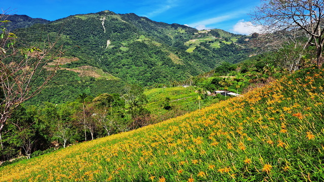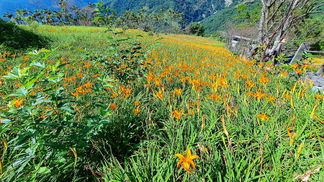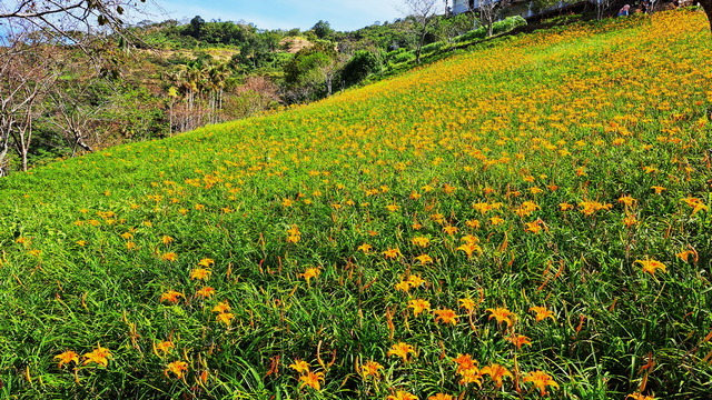 抵達金針山產區後,繼續向山內駛去。產區規劃成A、B、C三區,佔地很廣,不像赤柯山和六十石山那樣集中。九月金針花盛開時,整片山坡金黃耀眼,而此時已經過季了,金針花都已經被採收了,只剩下幾個商家還保留了花田以招攬遊客。