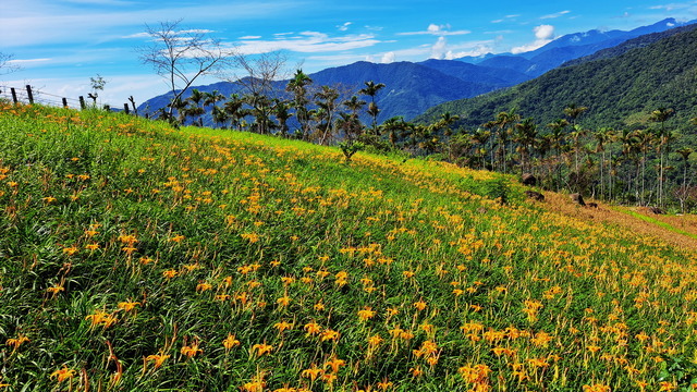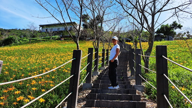下山途中,心想反正來都來了,那就再次溫習一下金針花的美吧。雖然花季已經結束,但賞花的遊客還不少,這裡顯然已成為臺東的必遊景點。金針花在陽光的照耀之下,呈現出飽滿的金黃色,與遠方的海岸線形成鮮明的對比,景色依舊迷人。