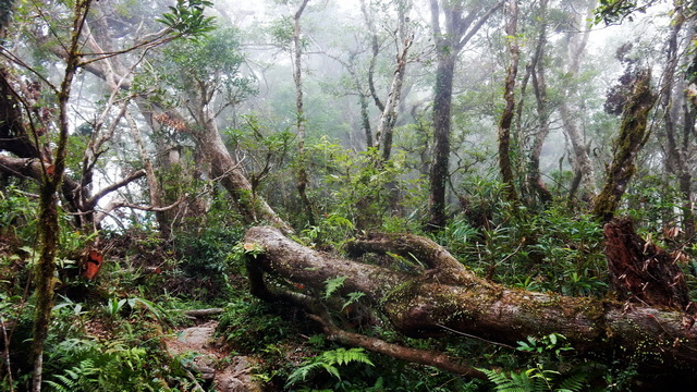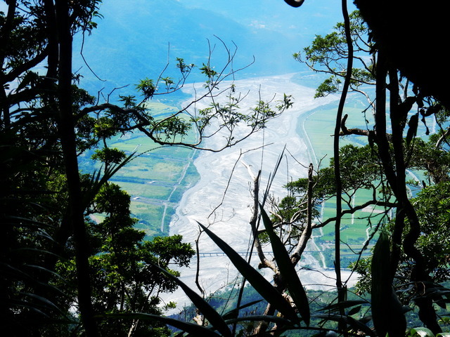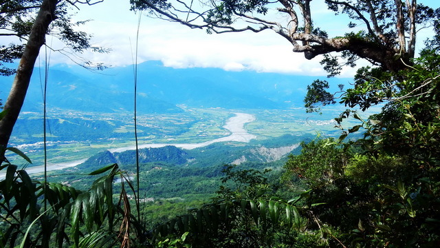 走到稜線上,視野徹底從海洋轉向內陸,眼前清晰可見壯闊的花東縱谷鹿野村,鹿野溪浩浩蕩蕩與卑南溪交會。東部的河床總是如此粗獷,但是水量並不多,可見得水量隨著季節顯得相當懸殊。與鹿野相對的鸞山部落就在山腳下,這一帶都是布農族的領域。此刻已看不到海,因為山上早已被雲霧籠罩,大片的白色雲海像是棉花一樣橫鋪山頂,但不侵入樹林裡。縱谷的田野、部落和溪流形成一幅壯闊神靈的山水畫。