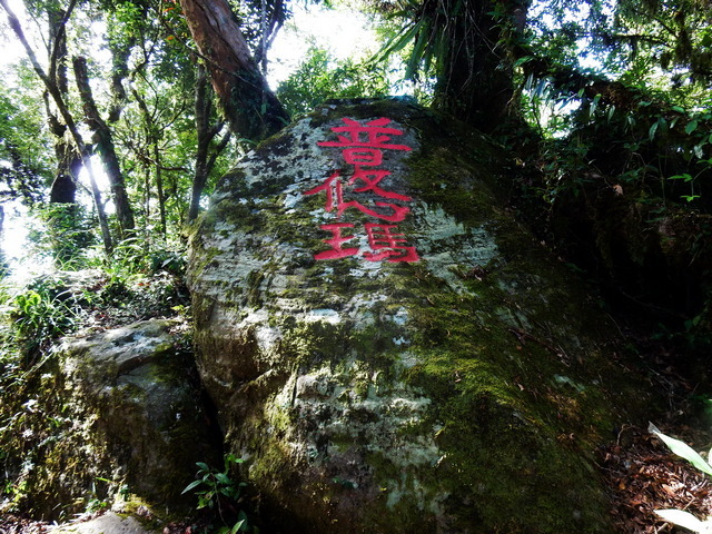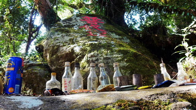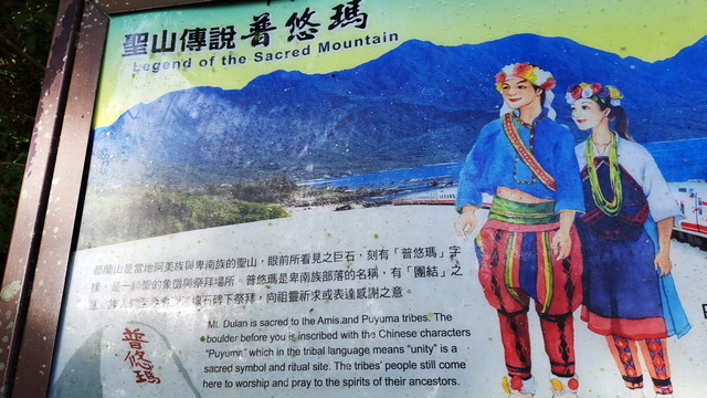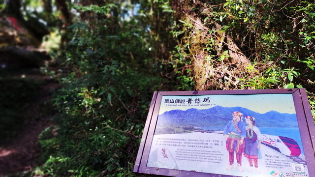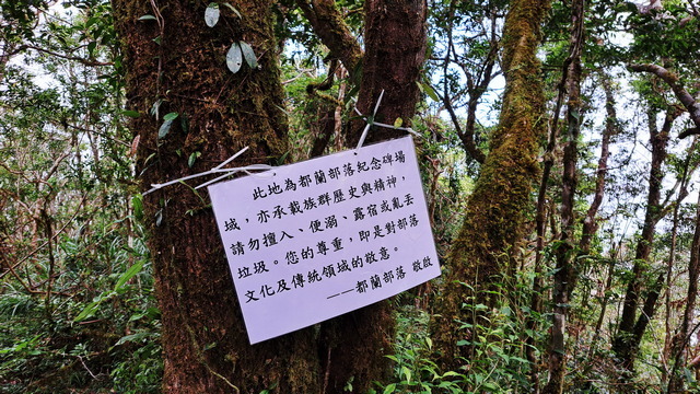 抵達岔路平台,這裡有一座原住民祭壇,本來以為是阿美族的聖山,但是祭台上卻刻寫著普悠瑪。最後走向三角點,則是貼有都蘭部落的告示,呼籲登山客尊重他們的聖山。所以都蘭山是很多民族的聖山。