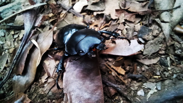 下山時,心情放鬆不少,沿路開始留意周遭的景物,發現了美麗的小花。現在我看到這些花,大多是先拍照,回家再利用「以圖搜圖」確認,例如台灣油點草、長花九頭獅子草。此外,也發現了滿地的甲蟲,讓我想起20年前流行玩甲蟲時,表哥曾到都蘭山區抓了一堆送給我的孩子。