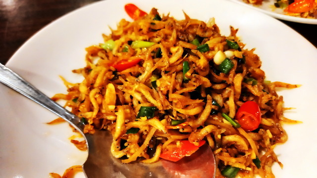 「司馬林魚」是點了才知道「造業」,原來這並非我以為的馬林魚(Marlin),而是臺東限定的日本禿頭鯊魚苗。這種魚苗主要在半海水的大武溪和卑南溪口一帶捕獲,口感與吻仔魚不同,別有一番滋味。