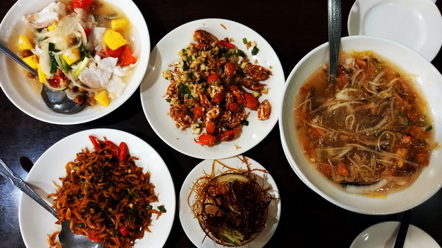 看著菜單隨意點了幾樣,結果卻有驚豔的發現,全都是在東海岸才能吃到的在地海味:蔬果曼波魚、鬼頭刀羹米粉、司馬林魚和浪花蟹。