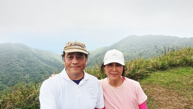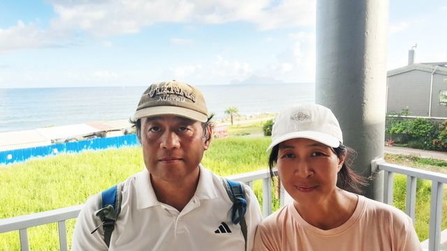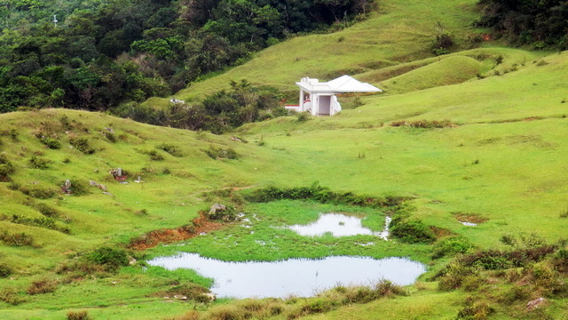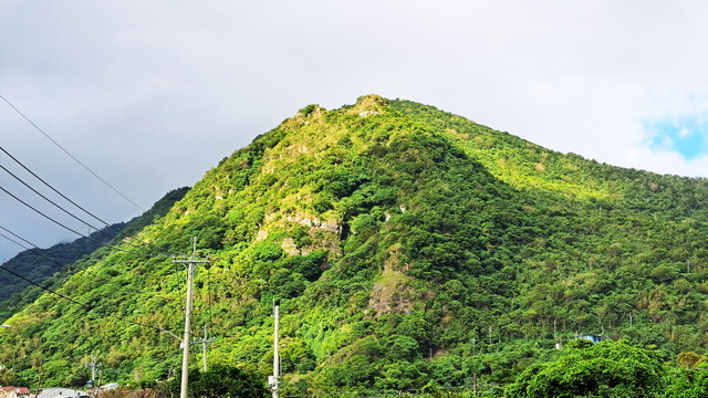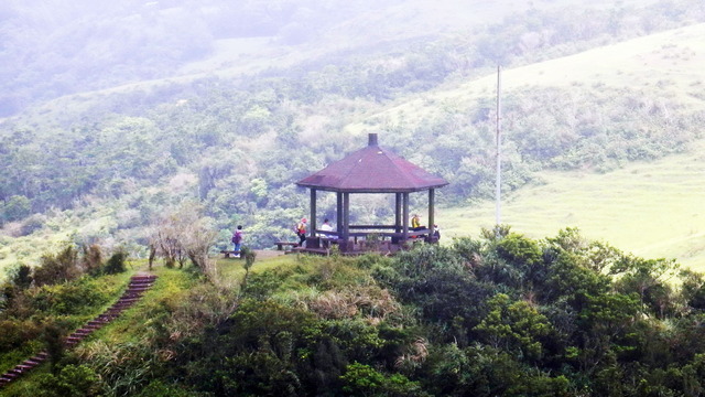 抵達涼亭正好享用大飯糰,這家做的飯糰是我吃過最大的飯糰,裡面的料是剛炒熟的肉片,不像一般的早餐飯糰。幸運的是,此時恰好下起了一陣十分鐘的小雨,正好在涼亭內躲雨消暑。
