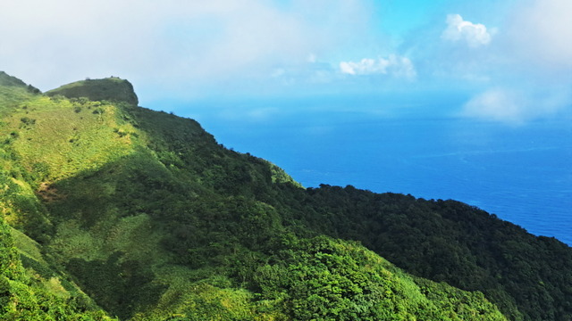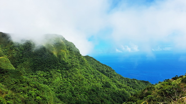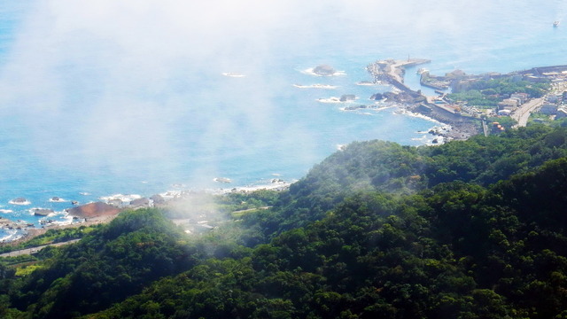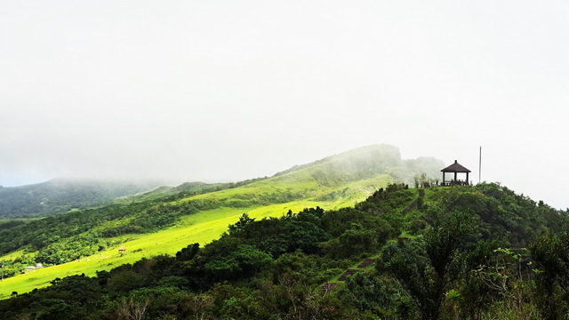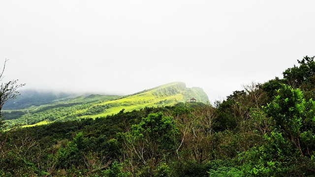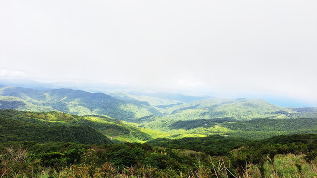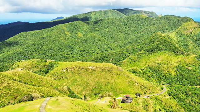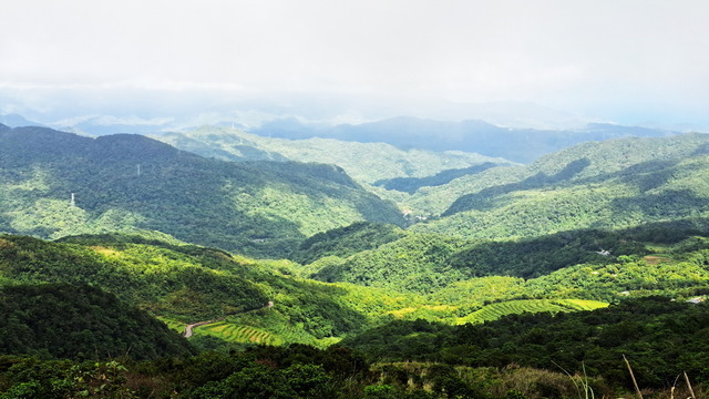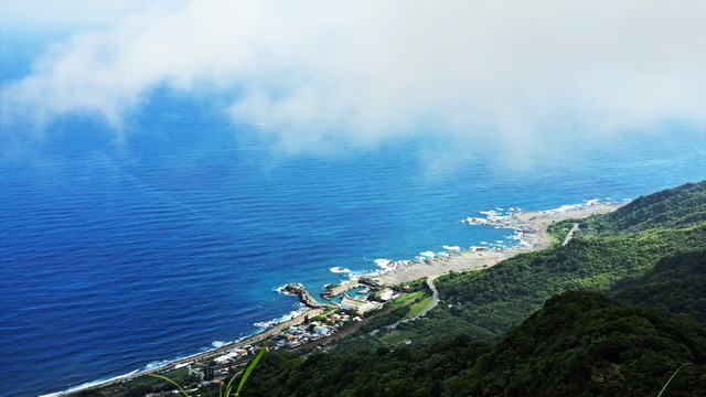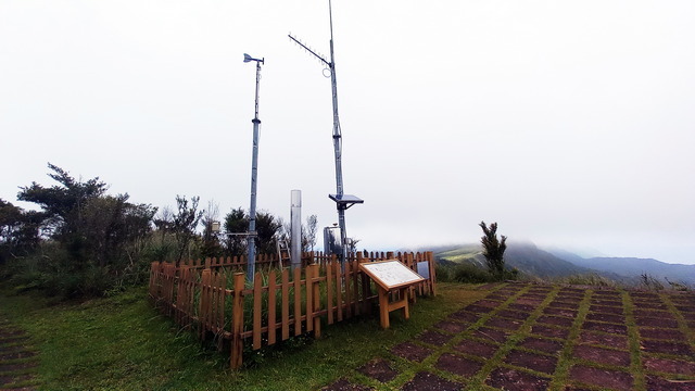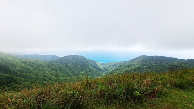 我們已經來到了宜蘭與新北的交界,從這裡開始,風景徹底轉換,左右兩側不時能看到海景,讓人一度搞不清方向,原來進入了東北角的高點。高山上的群巒疊嶂與浩瀚的海洋美景交織,涼亭和單面山清晰可見,那是我們接下來要經過的地標,途中還會經過一個氣象局的自動測量站。