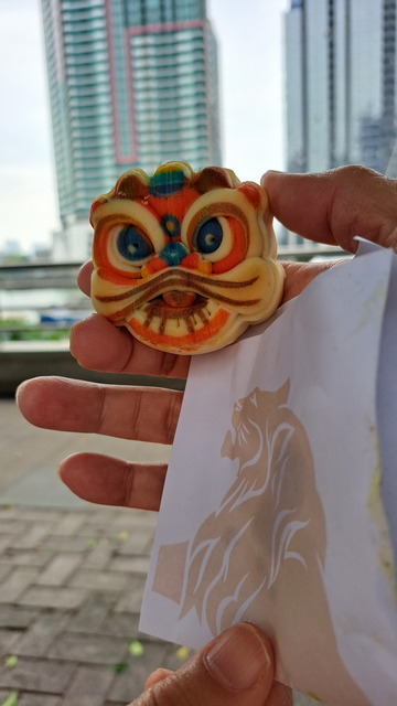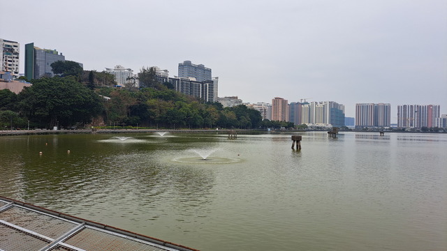 我們選擇從大水塘出發。這片水域見證了澳門城市的成長—1930年代因人口激增,政府在此興建水塘,引入西江水以解決供水問題;二十年前再開發為休憩區,如今已成為居民晨運散步的日常場景。水塘旁連著回力酒店,我便以此作為環島的起點。門口還有財神爺派發紅包,年味正濃。