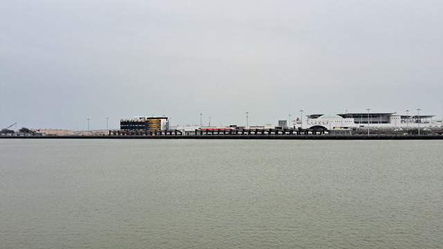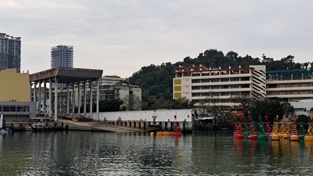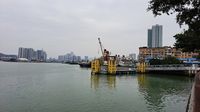 從關閘回到水塘,是全程最無聊的一段。沿途大型工程林立,包括遠方可見的港珠澳大橋相關設施,行人動線被切割得支離破碎,只能在工地與圍欄之間穿梭尋路。過了漁翁街,終於抵達水塘。現在人們在此黃昏運動,我們選擇走水塘的外圍,到回力酒店,連接起一個大圈。晚上早已約好與家人在公雞葡國餐共進晚餐,只得加快腳步,匆匆為旅程畫下句點,也因此無暇再探水塘外側的外港碼頭。