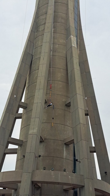 抵達西灣,人潮漸稀。朝旅遊塔方向前行,正好遇上高空「笨豬跳」。勇者自由落體兩次後被緩緩放下,圍觀者卻面無表情,彷彿看一場無聲表演。落地時沒有掌聲,只有略顯落寞的背影。本想等下一位挑戰者,無奈準備過程過於冗長,只得轉身離去。