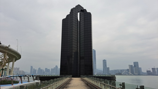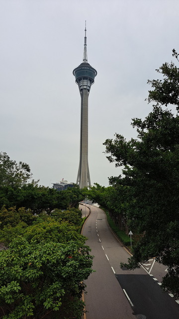 再往前是澳門文化中心與澳門科學館。思緒忽然飄回幾年前在文化中心觀賞齊白石畫展的午後;去年我也曾參加澳門日報舉辦的「公益金百萬行」,從這裡步行至媽閣。今天的環島路線,與那次健行有一段重疊,舊日記憶在腳步間浮現。