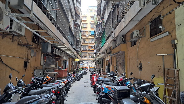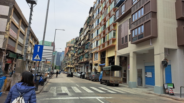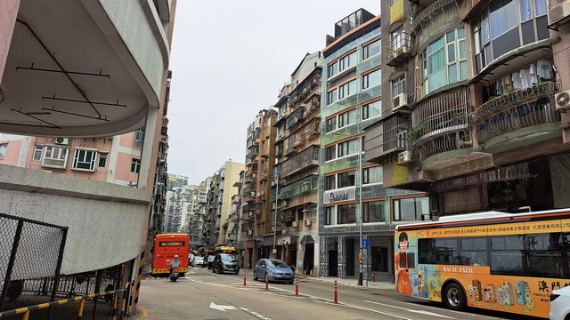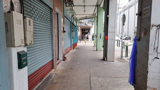 這裡開發甚早,古老樓房排列地充滿了古早澳門風味。雖然老舊,但是品味航運興盛依舊,有的是老字號的大集團;空氣中瀰漫著魚腥味,沿路多的是魚欄,經過十六浦渡假村,便到了沙梨頭街市。沙梨頭街市是澳門最好的魚市場,幾年前來吃過一次,前幾天逛過,滿滿的海鮮美味,今天休市,依舊明亮清潔。