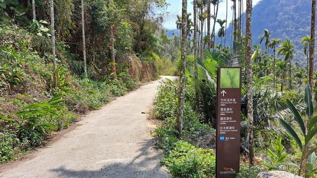 竹坑溪步道有點像上次到訪的青年嶺步道,位於公路旁的溪谷。如果從西入口走到東入口,全長是3.3公里,但是開車卻要走6公里。今天只能走到龍宮瀑布,不到2公里,約半小時即可抵達。