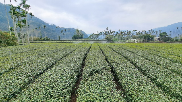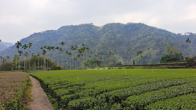 從龍宮瀑布原路折返至入口,遠方可見幾畝菜圃與茶園。入口附近另有一段木棧階梯,循階而上可見竹坑溪步道的指示牌,這一段其實也是步道的一部分,並可通往西側出入口的另一處停車場。