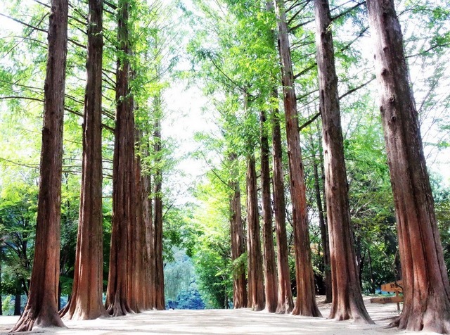 我沒有看過韓劇『冬季戀歌』,不知道『冬季戀歌』鏡頭下呈現何種畫面,我只是從旅遊書上看到南怡島的介紹,被南怡島上排列整齊的杉樹林道吸引住,決定要造訪這座小島。