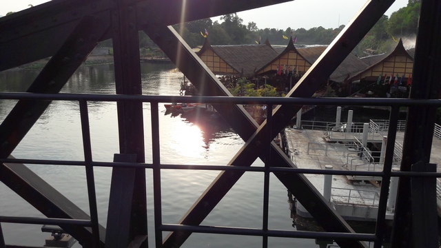 桂河、大橋、火車、夕陽,很美的一幅幅畫面。