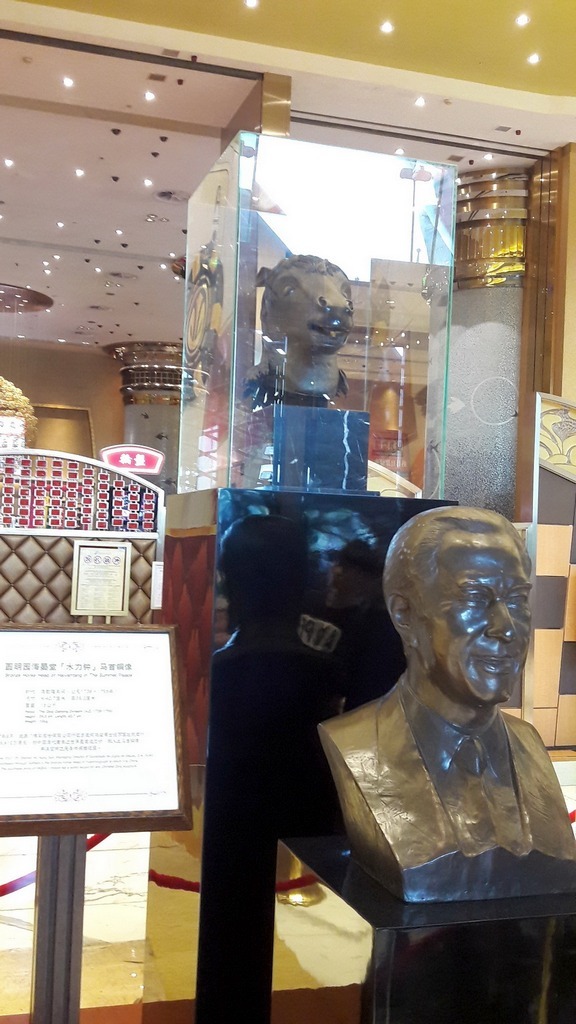 大廳裡面富麗堂皇,豪奢至極,還展示了許多價值連城的古董,如圓明園的獸首。