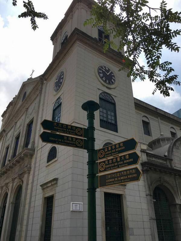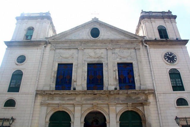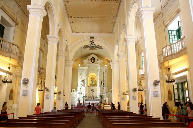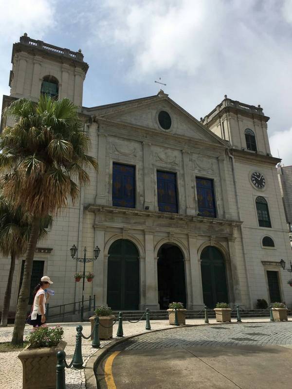 接著走到主教座堂(葡萄牙語:Igreja da Sé;俗稱大堂、聖母聖誕堂),是天主教澳門教區的主教座堂。主教座堂的歷史悠久,始建於1576年,本為一幢小型木造的建築,於1622年以三合土建造,曾歷經多次改建,現在的樣貌是1937年改建後的成果。屬於「新古典主義」的建築風格,外觀宏偉典雅,主教座堂主體為一層,坡屋頂,正面左右雙塔式的建築構造;設計簡約,僅以彩色玻璃作裝飾,屋頂有鐘樓,每逢有重要彌撒、大禮、瞻禮、婚禮時就會敲打鐘樓的鐘;教堂的大鐘是紀念葡王伯多祿五世榮登王位。