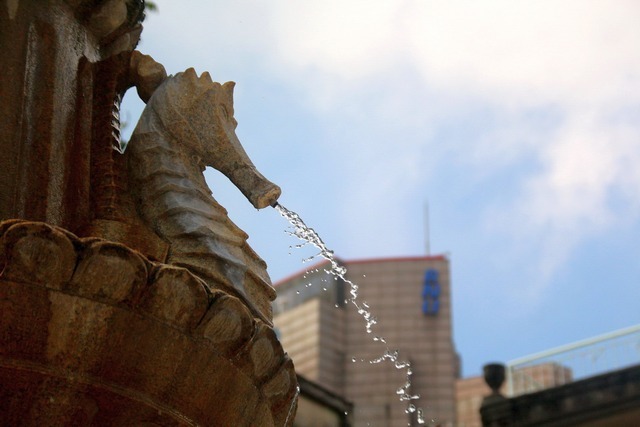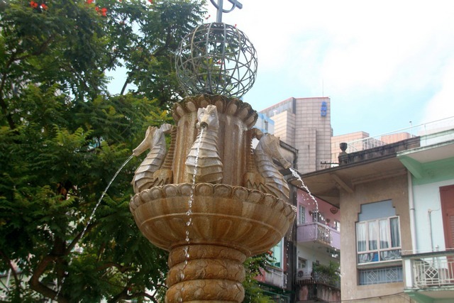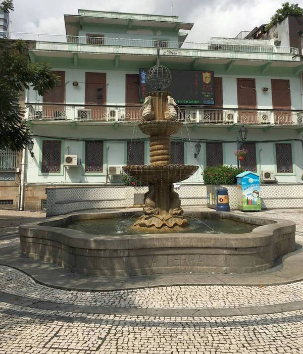 廣場上有一座噴水池與石雕的十字架,這一帶充滿了南歐風情。