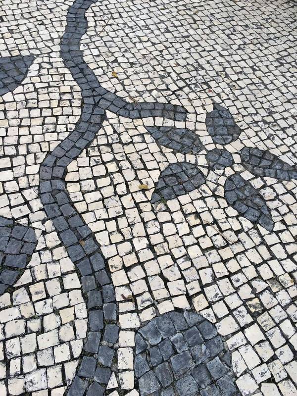 大堂前地的廣場上,以黑白石磚拼貼出美麗優雅的馬賽克圖案,