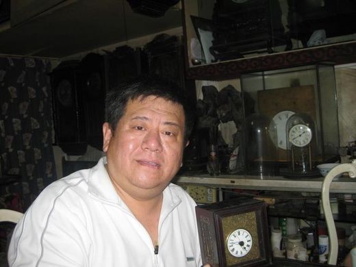 1997年來大陸工作,5年後公司改組,分到新部門當主管,開始了新領域的開發,2003年春,到天津開發客戶,夜宿旅舘,清晨天未亮即被街上吵雜聲喚起,以為街上有糾紛,看了才知是每週四的古玩交易市場,原來我住的飯店就在〝瀋陽道〞旁,這〝瀋陽道〞的〝古玩交易〞存在已久,它是目前大陸最大的地攤式〝古玩交易市場〞,每週四風兩不阻,大夥〝約定俗成〞就定了這一天。我的第一個〝藏鍾〞三五牌座鍾就是在這用〝105元〞人民幣購得,等到另一攤時才知道同樣的鍾才賣〝45元〞,60元學費就這樣繳了,還好〝啟蒙〞的代價不算高,從這時起就一頭栽了進去,到現在還沒〝痊癒〞。