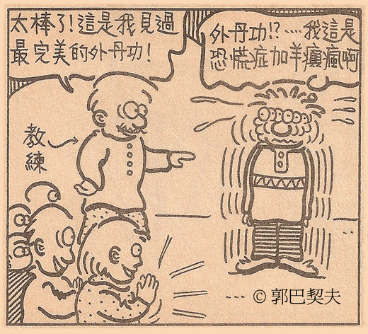 ▲這幅單格醫藥漫畫〈外丹功〉,是我十五年前的作品,1993年6月3日,刊登在《中央日報》醫藥版。那時的郭俊麟29歲。