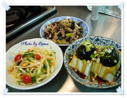 如題,4/25晚餐的主角當然是泰式涼拌木瓜絲。