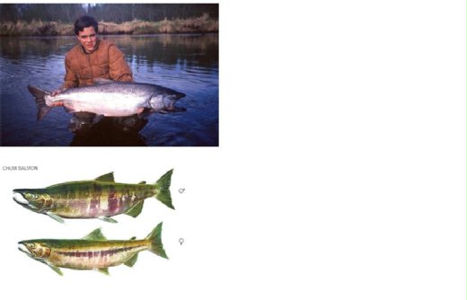 1. Chinook( 又名 King, Spring, 30 磅以上又叫 Tyhee) ,體型最大,最大可達六七十 磅 ,肉質佳,有紅肉,白肉兩種。