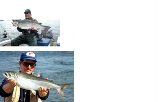 開始釣鮭魚純屬意外。1994夏末的一個週末去釣鱒魚槓龜,大概天太熱,魚兒們避暑去了。開車回程在高速公路旁,見到有人好像在釣魚,就下車湊湊熱鬧,反正閑著無聊。一看之下可嚇得目瞪口呆。正值鮭魚迴游,魚兒們擠在河裡,不但鋪滿河床,還得睡上下舖,甚或疊羅漢。不時還翻滾推擠,鬧得河水沸沸滾滾像煮開了的水。興奮之餘,拿著釣鱒魚的裝備,姑且一試。反正問一下旁邊的前輩,再模仿人家的手法,也就上陣了。