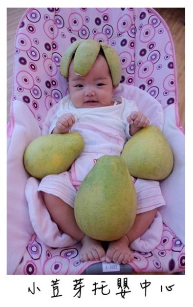 看到小荳芽托嬰中心老師精心為小孩準備的柚子帽,是不是大家都覺得很可愛呢?相信小孩也是樂在其中…