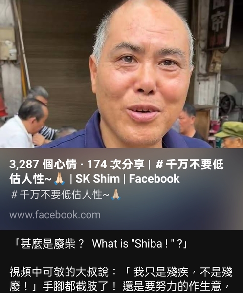 視頻中可敬的大叔說:「 我只是殘疾,不是殘廢!」手腳都截肢了! 還是要努力的作生意,當家裡頂梁柱!