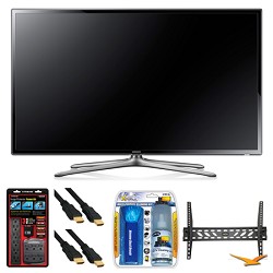 Kit includes UN46F6300 46 inch 1080p 120hz Slim LED Smart HDTV with WiFi Flat Adjustable Wall Bracket w/ tilt level TVs 32-60 inches Home/Office Surge Protector Power Kit (270 joules protection) 2 6 ft High Speed 3D Ready 120hz Ready 1080p HDMI Cables Performance TV/LCD Screen Cleaning Kit Smart TV – The Samsung Smart TV finds the movies and TV shows you like – and more. Navigate within the 5 Smart Hub content panels. Easily discover movies shows and social posts with less searching and more watching. Smart Hub – Our new interface organizes your entertainment and content into 5 convenient panels On TV Movies and TV Shows Social Apps and a panel for your Photos Videos and Music. S-Recommendation – Discover what you want to watch with customized content options based on your preferences. Or visit the full S-Recommendation hub to find new things to watch. Web Browser – All the benefits of full web browsing right on your TV. From social sites like Facebook and Twitter to news weather entertainment blogs and more. Discover even more content possibilities with your Smart TV. Dual Core Processor – Dual Core processing speeds allow you to perform multiple tasks at the same time. It also enables fast web browsing while playing apps or TV programs that youve recently opened through the Recent History feature. Clear Motion Rate 240 – A Clear Motion Rate of 240 is a remarkable level of motion-clarity. TVs with this CMR can display action-packed movement with in-depth sharpness clarity and contrast. Clear Motion Rate was developed to accurately measure how well an LCD or LED TV can depict fast moving images. Previously motion-clarity was calculated by the frame refresh rate alone. But CMR offers a more complete measure by calculating 3 factors frame refresh rate image processor speed and backlight technology. Wide Color Enhancer Plus – Enhances hues by expanding the color range for a more vivid experience especially beneficial when watching older film productions and non high definition content. Full HD 1080p – Samsung Full HD 1080p displays picture quality thats crisp clear and breathtakingly life-like. The realistic detail of Full HD images invites you to enjoy a viewing experience that redefines reality. Built-in WiFi – With WiFi built right into the TV no additional equipment is needed to connect with an existing wireless router in your home network and start browsing the web accessing Samsung Apps or other Smart TV features. AllShare – Allows your TV to wirelessly access and stream content from any compatible device like a PC or mobile device. Share movies photos and music all through your TV. And with cloud technology you can access and even share content away from home. ConnectShare Movie – ConnectShare Movie lets you watch videos play music or view photos from a USB connection without needing to use a PC or special equipment. Simply plug your USB directly into your Samsung TVs USB port and watc