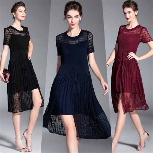 【糖潮】時尚格子紋網紗拼接壓摺皺洋裝(共三色) ![]() |