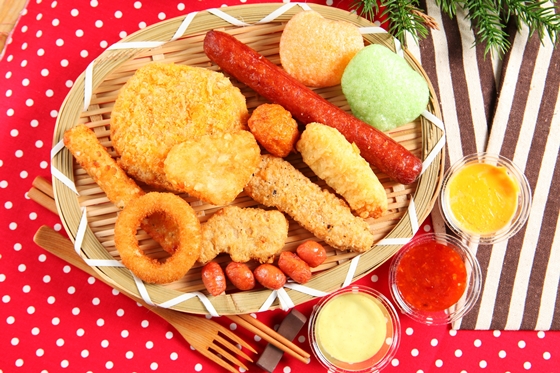 藍帶起司豬排+麥克鷄塊+洋蔥圈+三角薯餅+香檸鷄柳條+起司條+彩色蝦餅+小肉豆+德式香腸+章魚熱狗